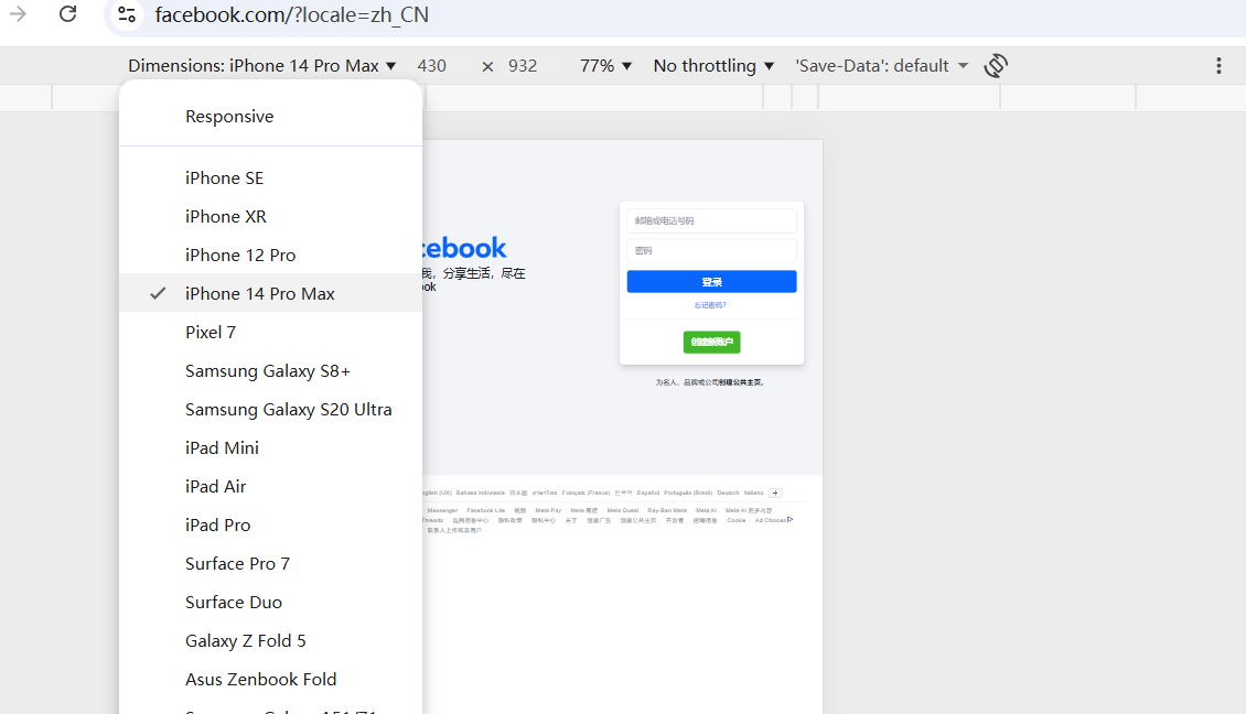3. 右边上角Dimensions选择 任意iphone 或14 Pro Max界面